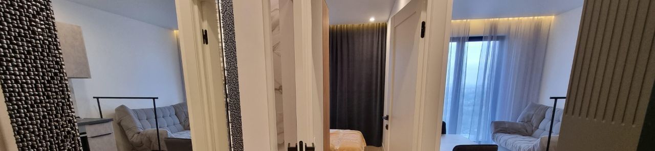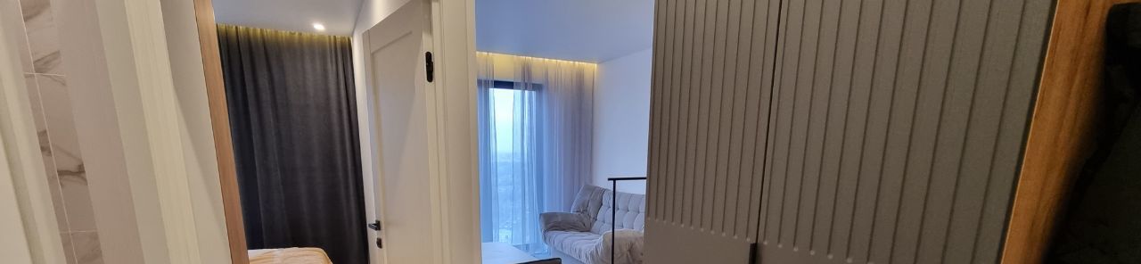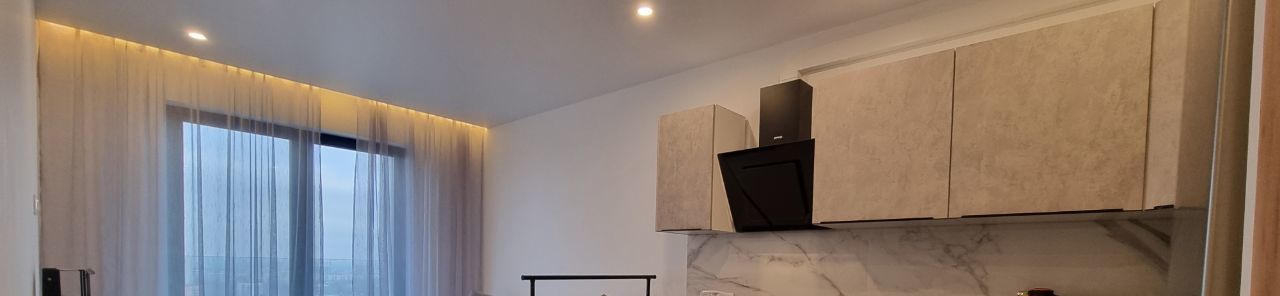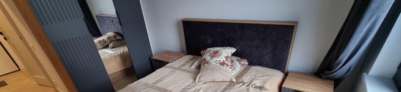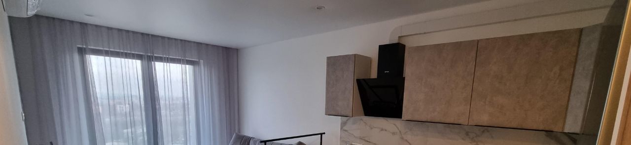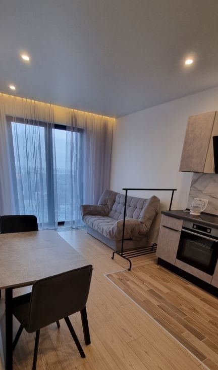 Сделана под евродвушку с кухней-гостиной и изолированной спальней. Полностью готова к проживанию, укомплектована мебелью, стильным кухонным гарнитуром и современной бытовой техникой, включая П.М.Машину, кондиционер, большой телевизор.