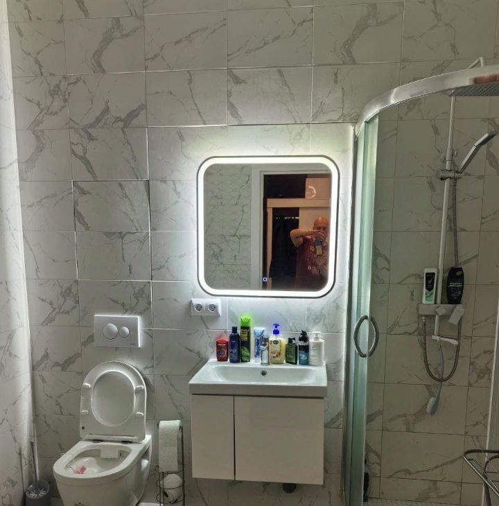 Есть , стиральная машина, посудомойка, холодильник, чайник. Полы в ванной с подогревом.