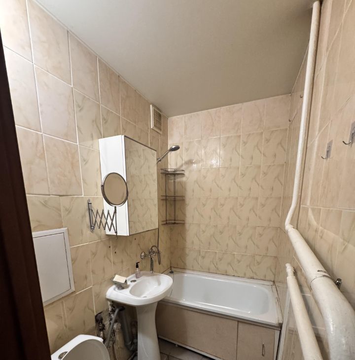 В квартире выполнен косметический ремонт. В уютной комнате и на кухне есть необходимая мебель. Из техники предоставляются холодильник и стиральная машина. Ванная комната оснащена ванной и совмещенным санузлом.