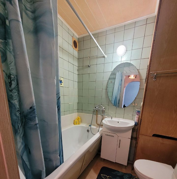 Квартира светлая,теплая,кухня с застекленной лоджией,с\у совмещен.(новая ванна).Во дворе дома своя парковка платная для жильцов,установлен шлагбаум.