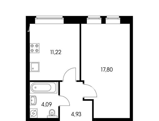 Большая комната, просторная кухня. В квартире сделан косметический ремонт (от застройщика).