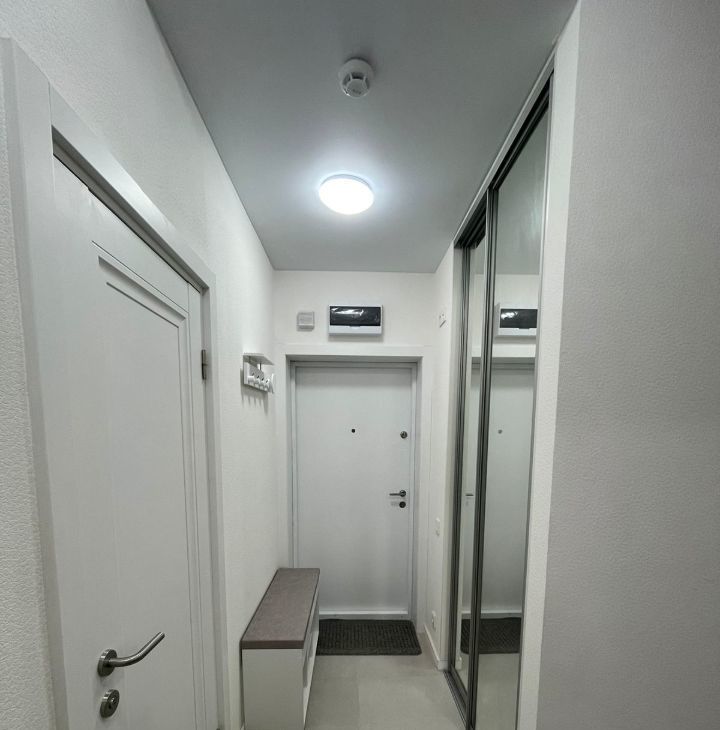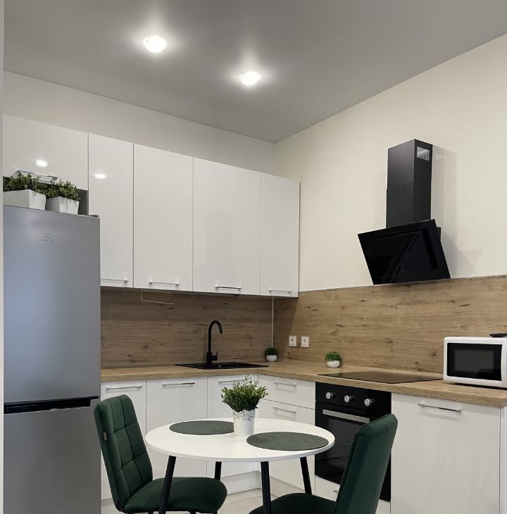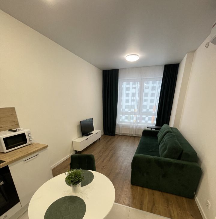 Квартира с новым ремонтом и полностью меблирована. Большая кухня-гостиная площадью 19,2 кв. м, есть всё необходимое для комфортной жизни: кондиционер, холодильник, посудомоечная машина и телевизор. Высокие потолки 2,83 метра. Идеальная хозяйка)
