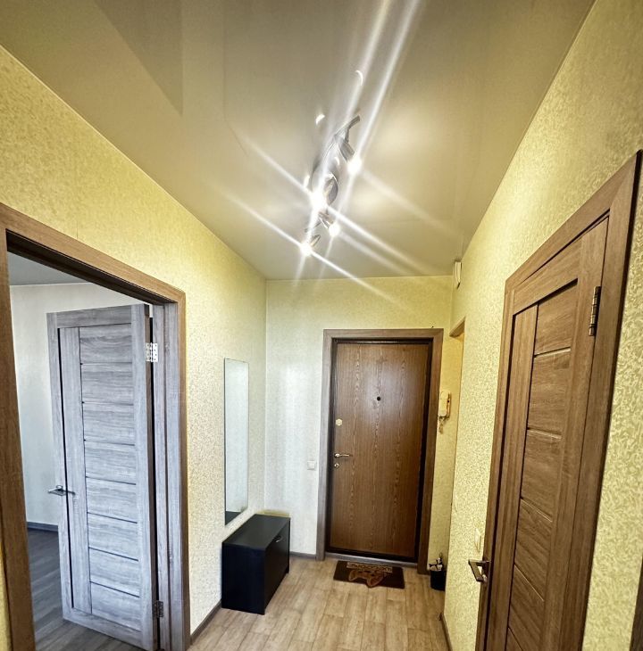 Квартира с продуманной кухней: кухонный гарнитур под единой столешницей, встроенный духовой шкаф, варочная панель, вытяжка, микроволновая печь и холодильник. Застеклённая лоджия. Комната не перегружена лишней мебелью — есть всё необходимое для комфортного проживания. Подъезд ухоженный, интеллигентные соседи, установлен видеонаблюдение.