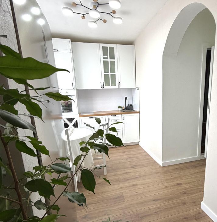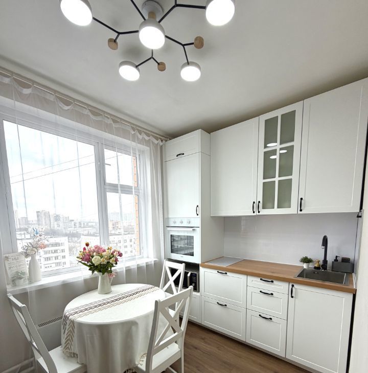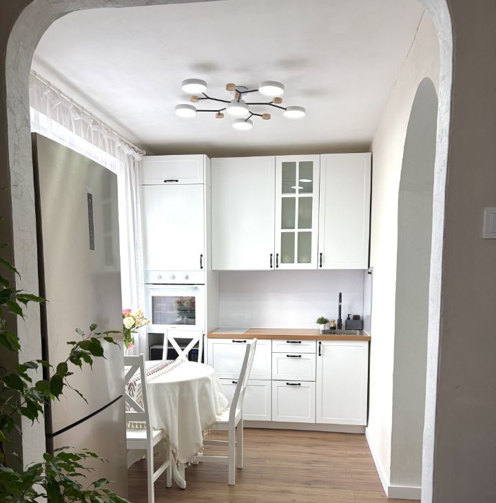 • Обои под покраску, кухонный гарнитур с доводчиками.