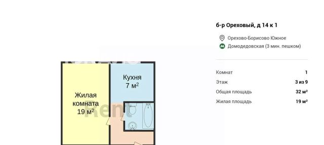 1-к кв. Москва Ореховый бул., 14К1 (32.0 м²)