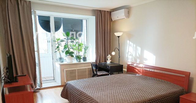 В вашем распоряжении просторная комната с балконом. Встроенный шкаф, двуспальная кровать, письменный стол, комод, телевизор, кондиционер. Здесь созданы идеальные условия для комфортного проживания.