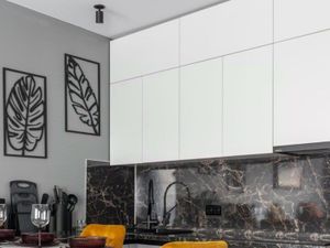 На кухне встроенный гарнитур, газовая плита с духовкой. Возможна установка посудомоечной машины.