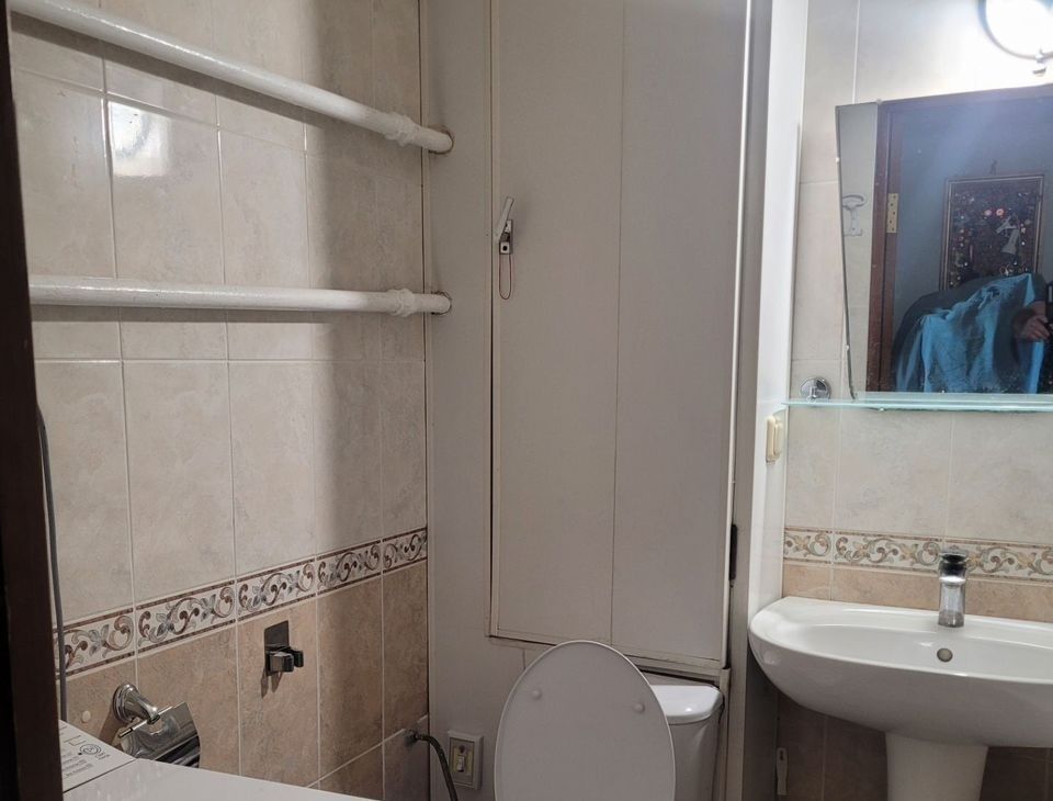 Санузел совмещенный, оснащен всем необходимым. Балкон застеклен, утеплен, что позволяет использовать его круглый год. Вид в полисадник.