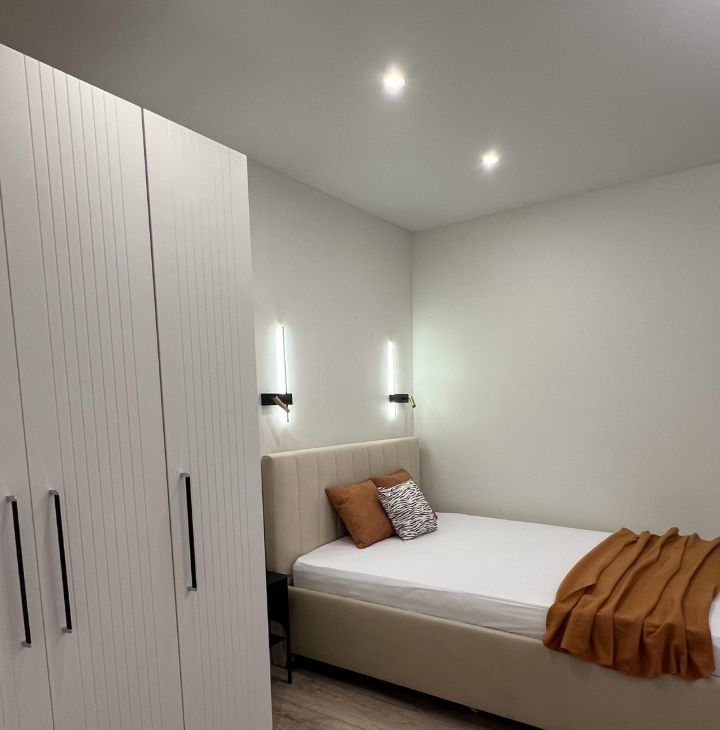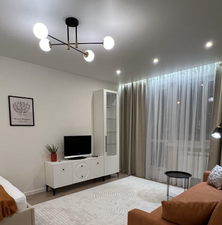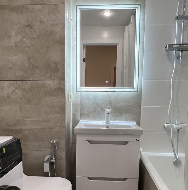 стильная, светлая, уютная однокомнатная квартира, оборудована всем необходимым для комфортного проживания. Кондиционер, водонагреватель, питьевой фильтр, посудомоечная машина, стиральная машина, индукционная варочная панель, духовой шкаф, вытяжка, холодильник, микроволновая печь, чайник, телевизор. В квартире установлены нептуны, теплые полы в санузле, мастер-кнопка на электричество