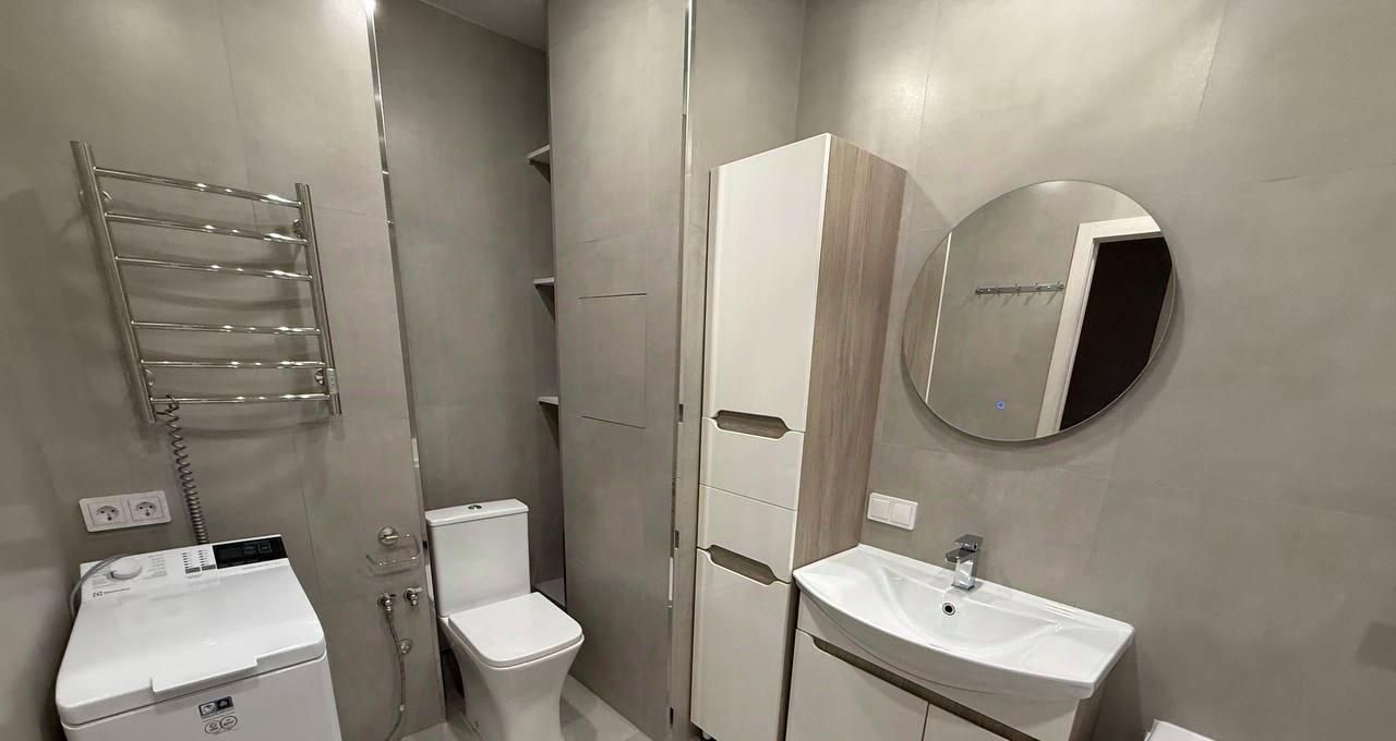 В квартире сделан качественный евроремонт. Есть все необходимое для комфортного проживания: кондиционер, холодильник, кофе машина, духовой шкаф с функцией свч, посудомоечная машина, 2 телевизора и стиральная машина. Мебель на кухне и в комнате позволит вам сразу заселиться без лишних хлопот. На кухне , в коридоре и лоджии тёплый пол. Санузел совмещённый, оборудован ванной.