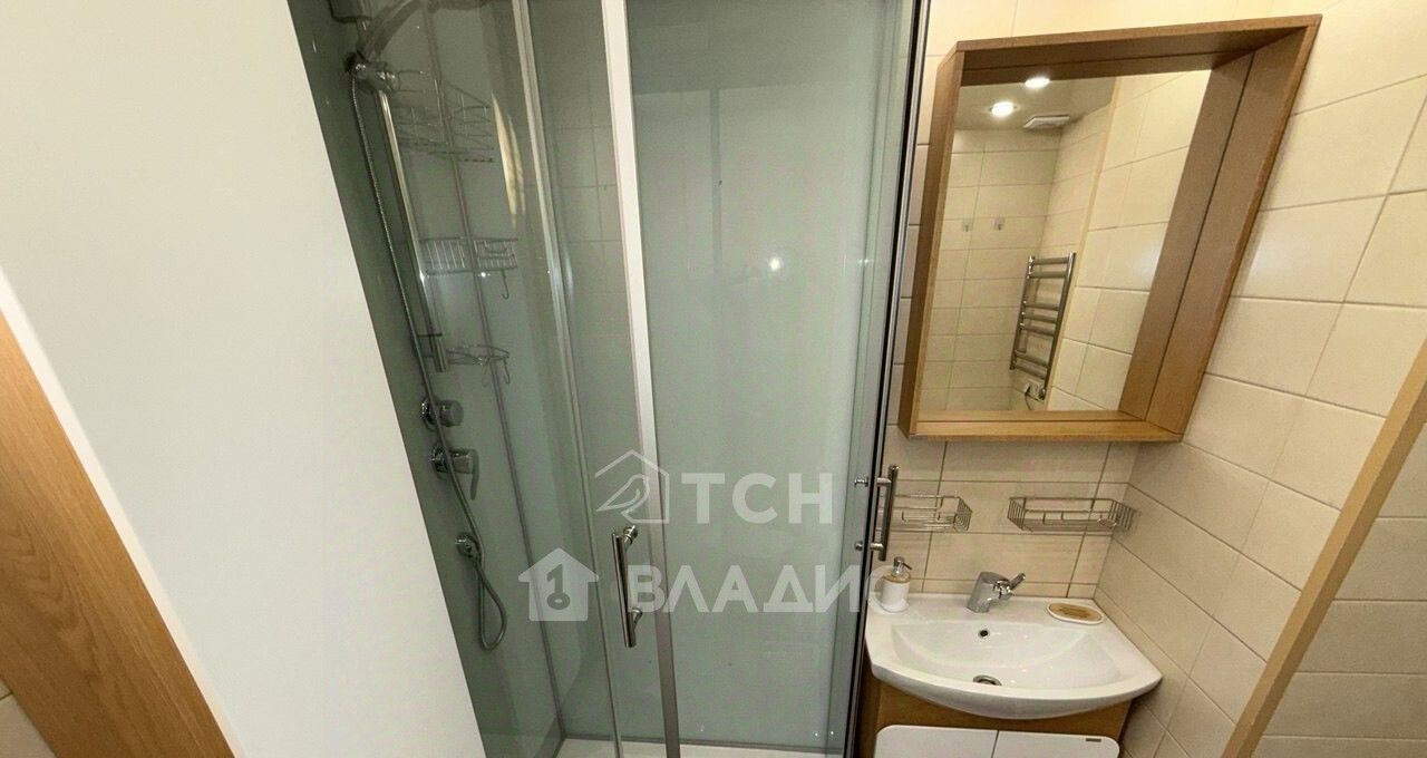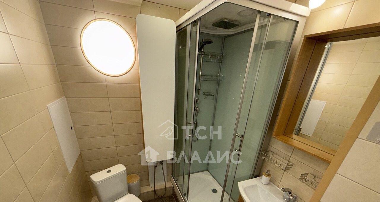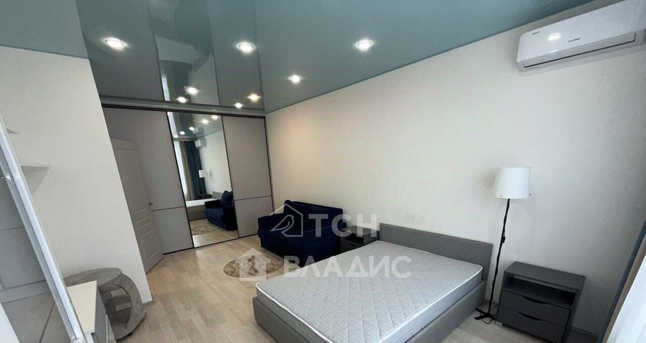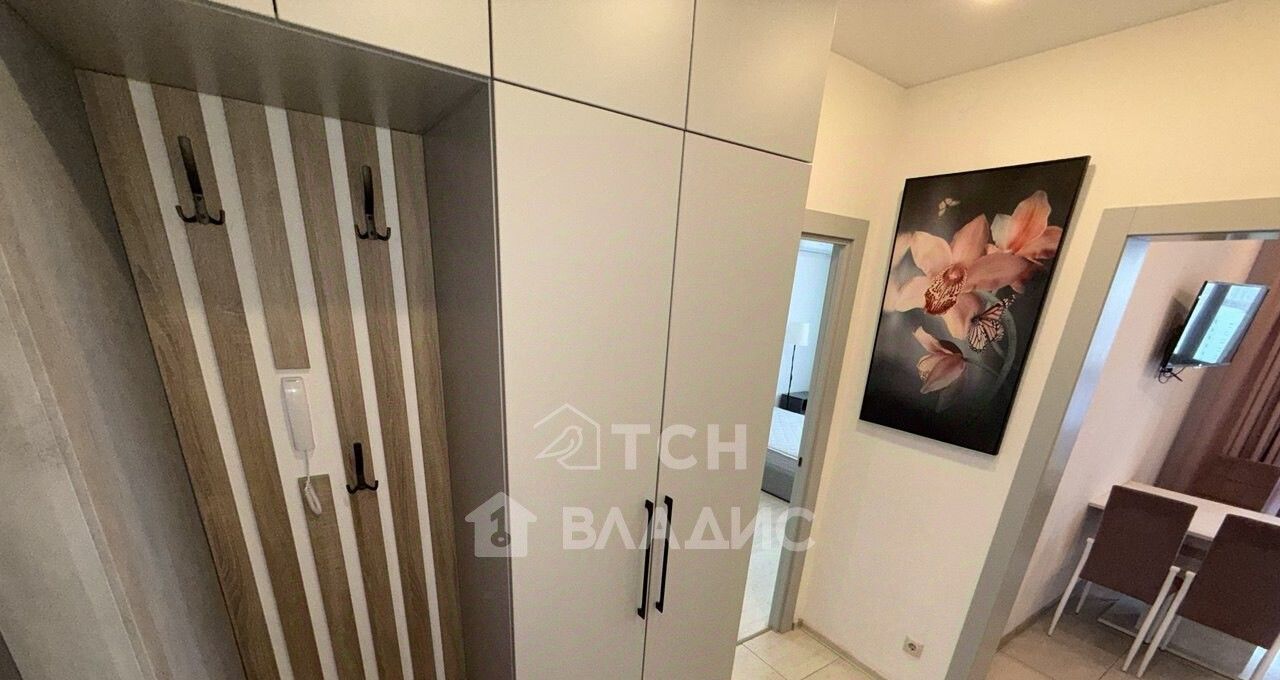 Большая изолированная спальня площадью 23 кв. м имеет глубокий встроенный шкаф-купе с разноформатной системой хранения, двуспальную кровать, гостевой диван, тумбы, полки. В комнате установлен кондиционер. Просторная кухня 11 кв. м укомплектована современным кухонным гарнитуром со встроенной техникой: посудомоечная машина, варочная панель, духовой шкаф, вытяжка, холодильник. Организована столовая зона с телевизором. Есть выход на застекленную лоджию, откуда открываются потрясающие виды. На лоджии предусмотрено место под хранение глубокий встроенный шкаф. Совмещенный санузел в плитке, установлена душевая кабина, стиральная машина, гигиенический душ. Для хранения есть пенал и шкафчик под раковиной. В коридоре установлен шкаф для верхней одежды и хранения сезонных вещей, вешалка, полка для обуви. Установлена надежная входная дверь с зеркалом во весь рост. Во всех помещениях предусмотрено зонированное освещение.