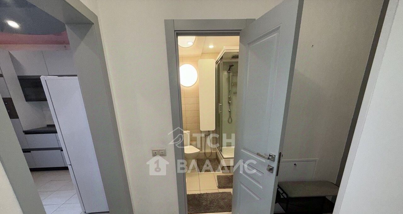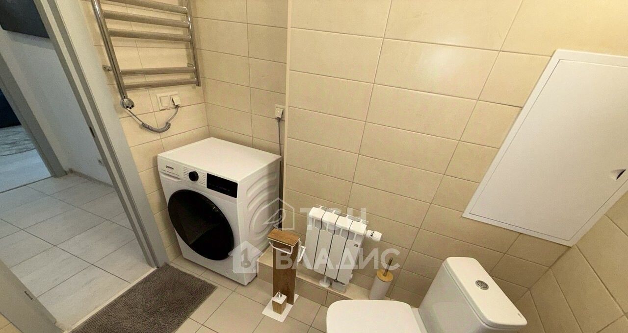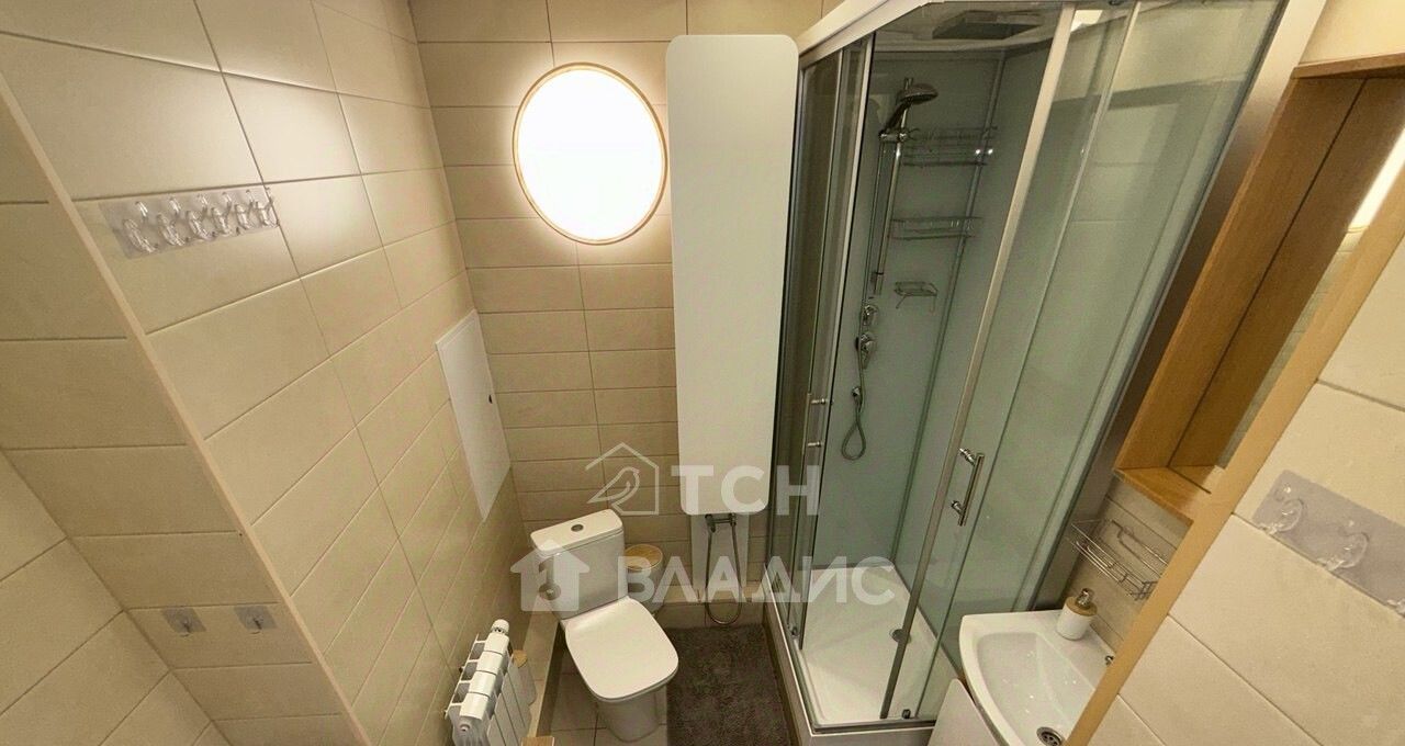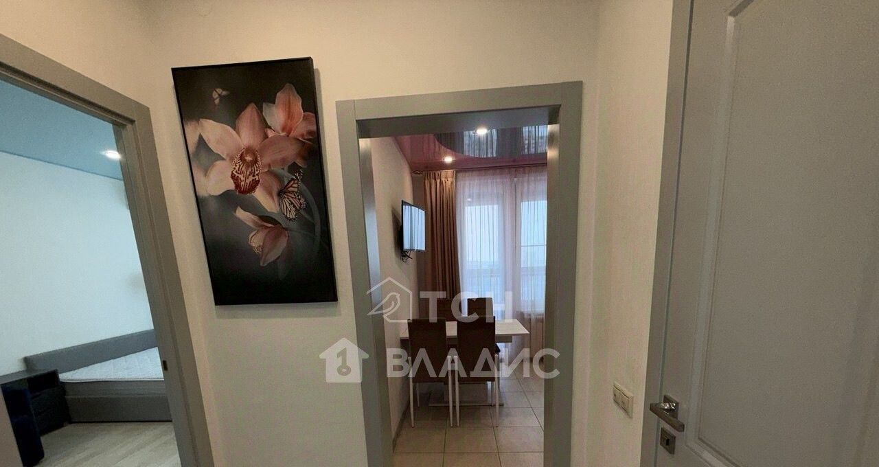 Большая изолированная спальня площадью 23 кв. м имеет глубокий встроенный шкаф-купе с разноформатной системой хранения, двуспальную кровать, гостевой диван, тумбы, полки. В комнате установлен кондиционер. Просторная кухня 11 кв. м укомплектована современным кухонным гарнитуром со встроенной техникой: посудомоечная машина, варочная панель, духовой шкаф, вытяжка, холодильник. Организована столовая зона с телевизором. Есть выход на застекленную лоджию, откуда открываются потрясающие виды. На лоджии предусмотрено место под хранение глубокий встроенный шкаф. Совмещенный санузел в плитке, установлена душевая кабина, стиральная машина, гигиенический душ. Для хранения есть пенал и шкафчик под раковиной. В коридоре установлен шкаф для верхней одежды и хранения сезонных вещей, вешалка, полка для обуви. Установлена надежная входная дверь с зеркалом во весь рост. Во всех помещениях предусмотрено зонированное освещение.