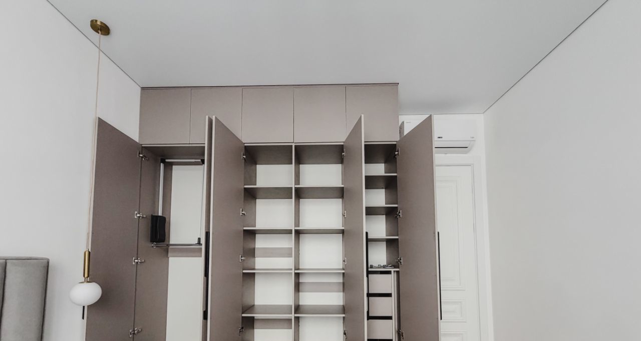 Сразу при входе вас встречает большой встроенный шкаф.По сути вы уже здесь сможете убрать все свои вещи, но это не все.