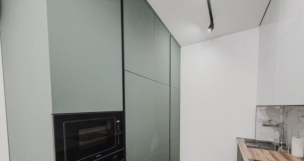На кухне также мы видим шкафы для хранения посуды и прочих предметов.
