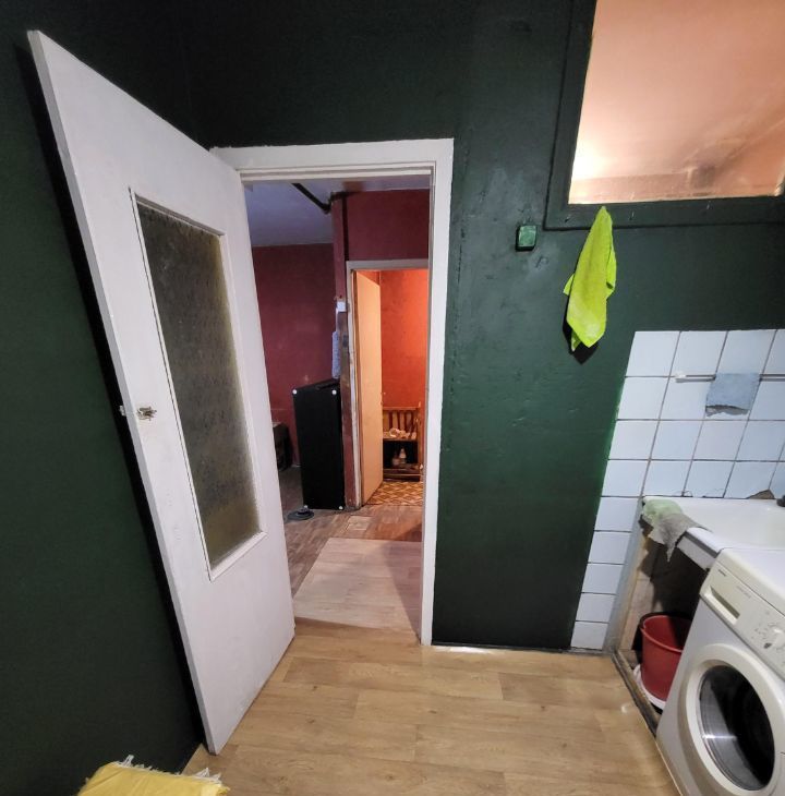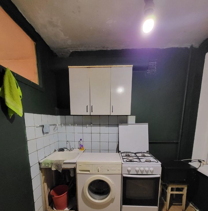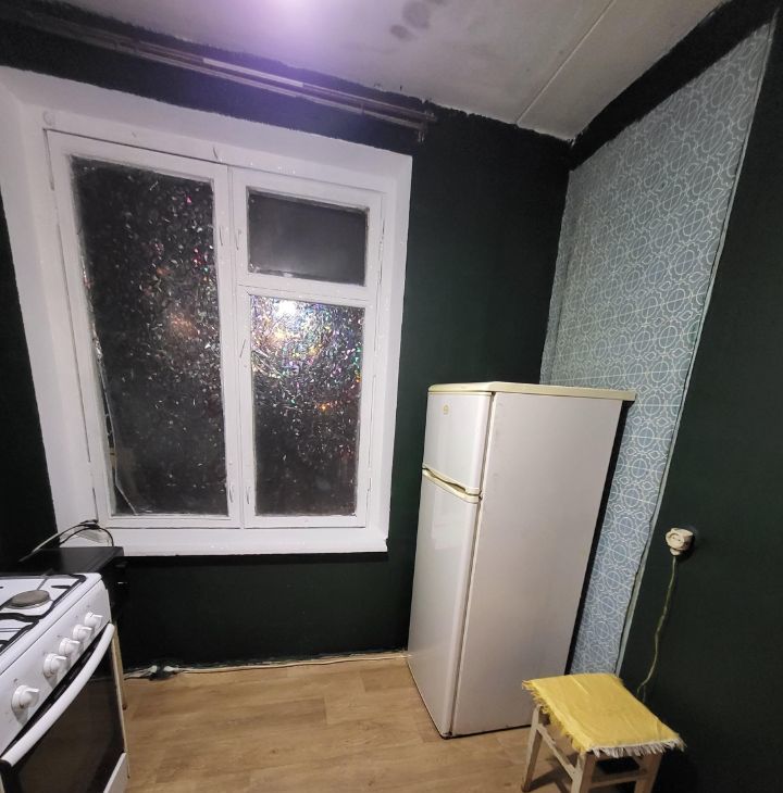 Кухня свежепокрашена и новый линолеум. Стола на кухне нет. В комнате есть стол, кресло, стеллаж, шкаф. Нет спального места, но готовы сделать скидку, чтобы Вы сами купили то, на чем вам будет удобно спать (бюджет в пределах 15к, вычтем из аренды по чеку).