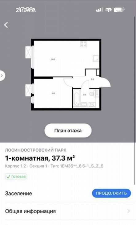 1-к кв. Москва Открытое ш., 18Ак2 (37.5 м²)