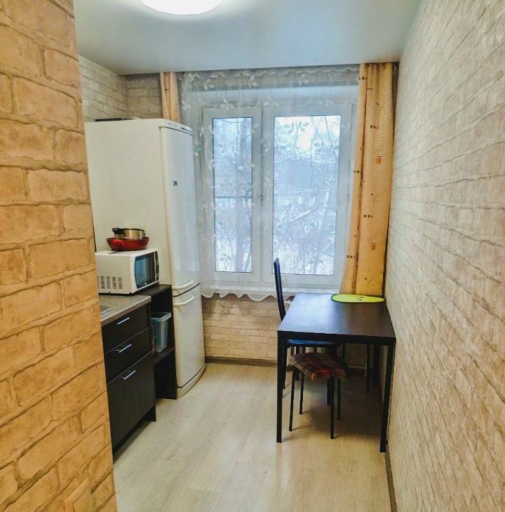 В квартире выполнен косметический ремонт. Обстановка включает мебель как на кухне, так и в комнате, что позволит сразу заехать и жить с комфортом. Для удобства проживания есть вся необходимая техника: холодильник и стиральная машина. Санузел совмещенный, оборудован ванной, что идеально для любителей расслабиться после рабочего дня.