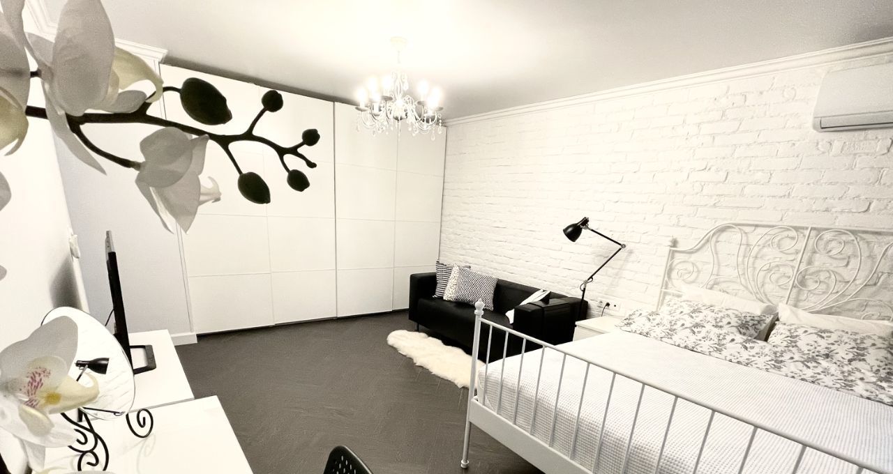 Квартира полностью укомплектована для комфортного проживания: удобная 2-спальная кровать, большой шкаф для одежды, качественные постельные принадлежности, WI-FI, посуда, вся бытовая техника: телевизор, стиральная машина, посудомоечная машина, кондиционер, микроволновка, духовка, варочная панель, холодильник, пылесос, утюг.