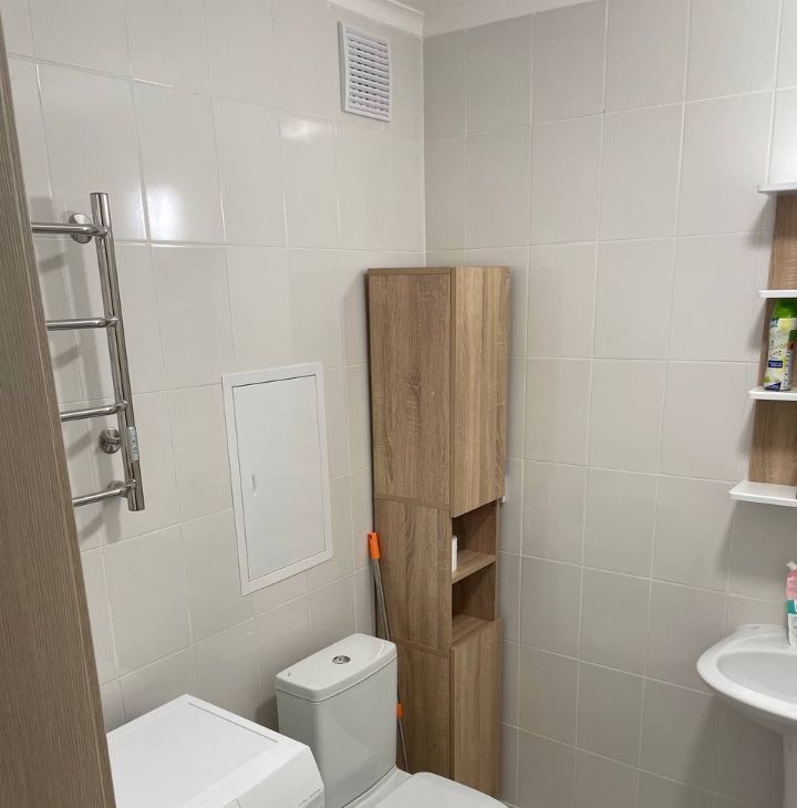 Сдаётся уютная однокомнатная квартира в современном кирпичном доме, построенном в 2025 году. Общая площадь квартиры составляет 45 кв. м, расположена она на 8 этаже 12-этажного здания. Высокие потолки (2.8 метра) и окна, выходящие во двор, создают атмосферу простора и уюта. Дом оснащён двумя пассажирскими и двумя грузовыми лифтами, а также подземной парковкой.