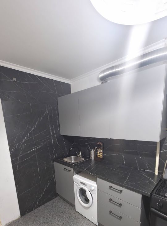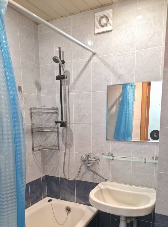 В квартире сделан косметический ремонт. Есть всё необходимое для комфортного проживания. Санузел совмещённый, с ванной. Высота потолков составляет 2.64 метра, окна выходят во двор, обеспечивая тишину и спокойствие.