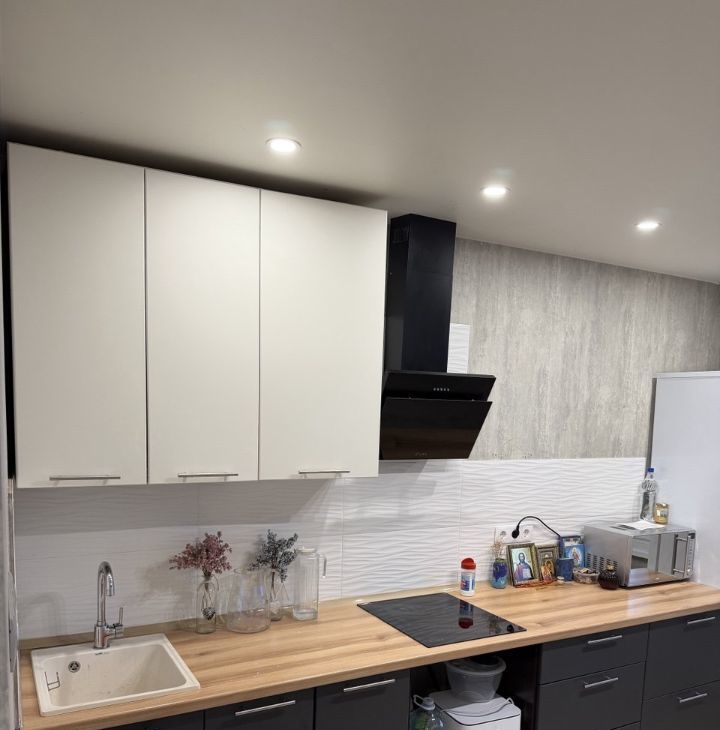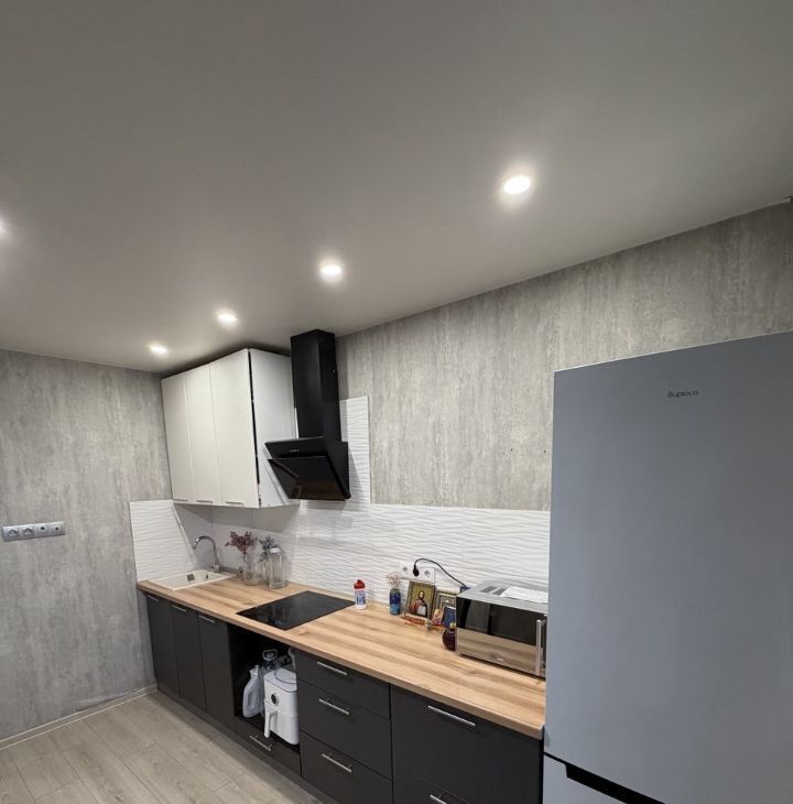 ОТДЕЛКА: В квартире выполнен качественный ремонт и размещена современная мебель. Кухонная зона оборудована гарнитуром с бытовой техникой: холодильником, стиральной машиной, вытяжкой и варочной панелью. Реализовано точечное освещение. В комнате двухпальная кровать, раскладные кресла, шкаф для одежды, рабочий уголок.