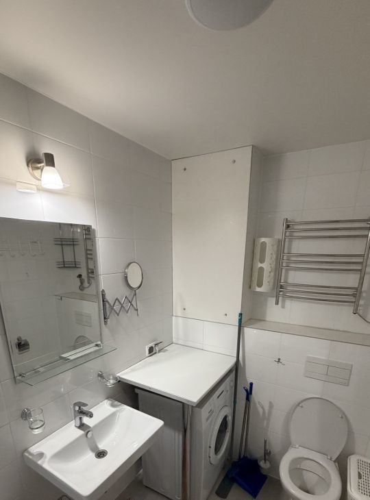 Есть вся необходимая мебель для комфортного проживания. Квартира оборудована современной техникой: холодильник, варочная поверхность, духовой шкаф, фильтр для воды, стиральная машина, кондиционер. Санузел совмещенный, ванная.