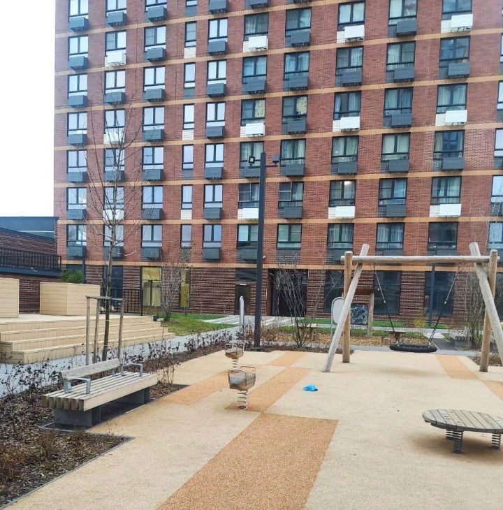 ЖК "Мичуринский парк", территория огорожена, площадки для спорта и отдыха, двор без машин.