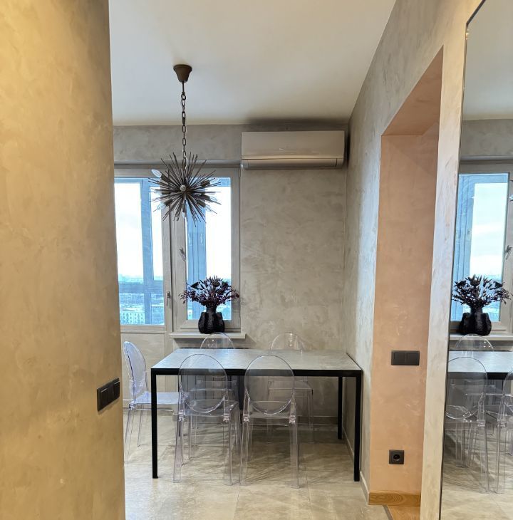В квартире расположены кухня, спальня, гостиная, санузел. Квартира полностью меблирована и готова к комфортному проживанию. В комнатах есть вся необходимая мебель, а кухня оборудована современной техникой: кондиционер, холодильник, посудомоечная и стиральная машины. Санузел совмещённый, с уютной душевой кабиной. Балкон — отличное место для утреннего кофе или вечернего отдыха.