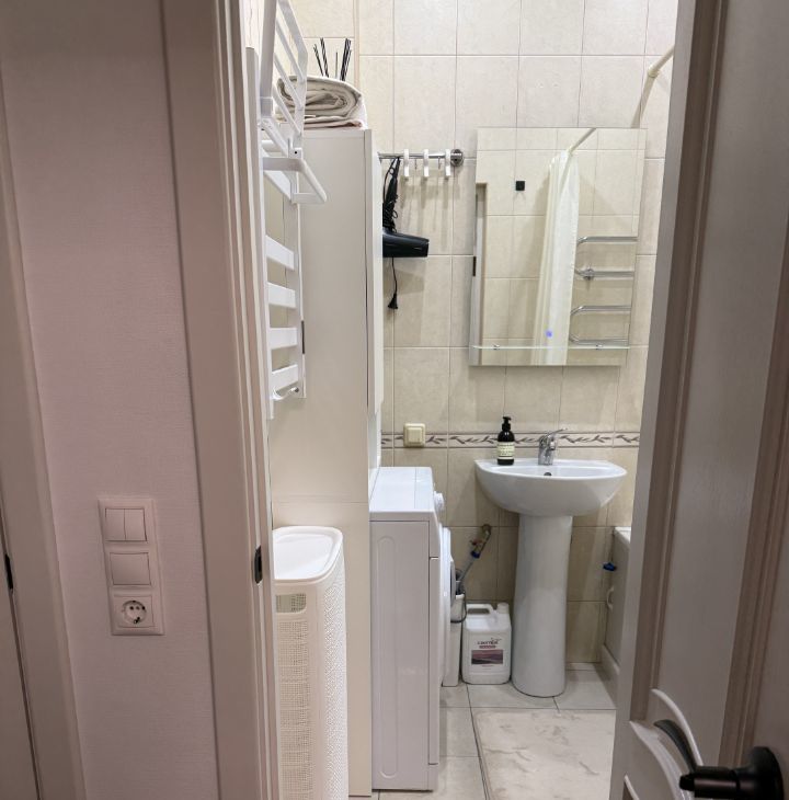 В квартире выполнен дизайнерский ремонт, что делает её особенно привлекательной. Все необходимые для комфортной жизни мебель и техника уже есть: кондиционер, холодильник, посудомоечная и стиральная машины, а также телевизор. Просторный санузел оборудован ванной. Из окон открывается вид во двор, что позволит вам насладиться тишиной и спокойствием.