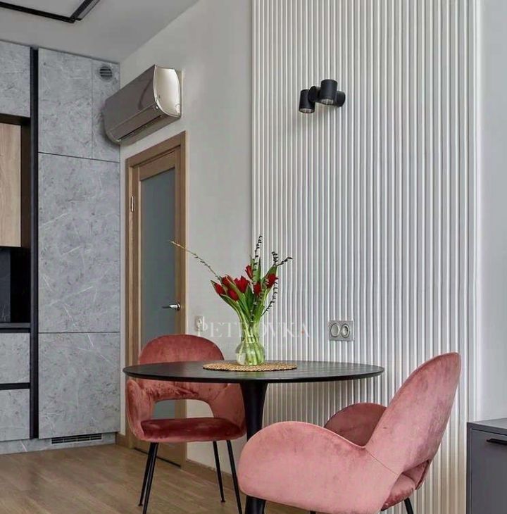 В квартире выполнен современный ремонт с использованием качественных материалов и разнообразных элементов декора , что создает атмосферу уюта и спокойствия. Продуманное освещение, включающее точечные светильники и декоративные бра, позволяет создать желаемую обстановку для любого времени суток.