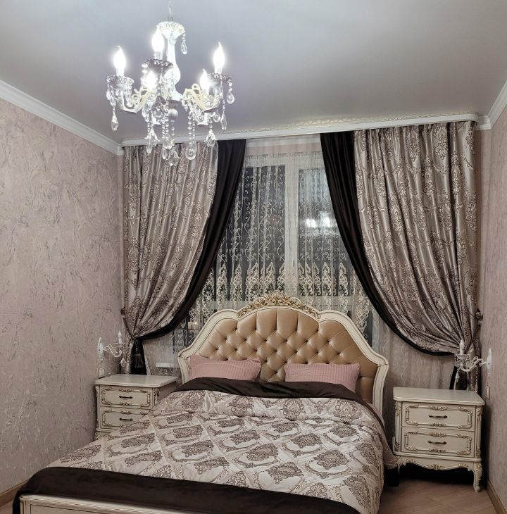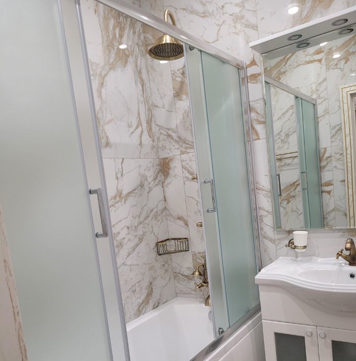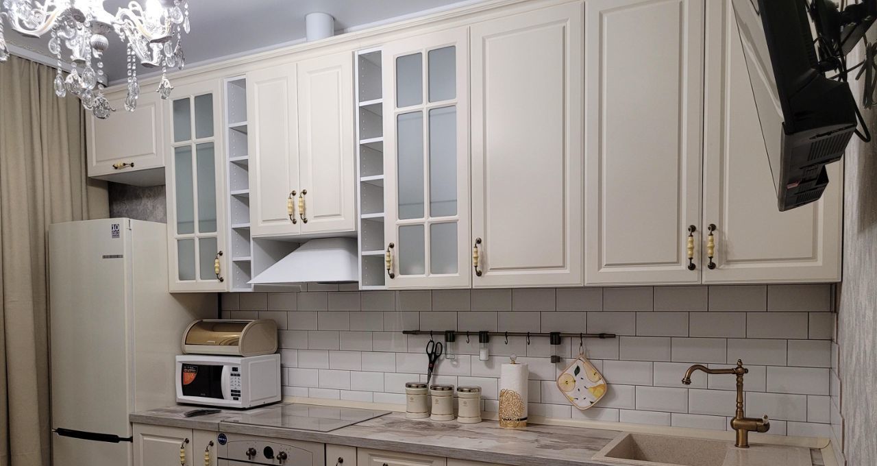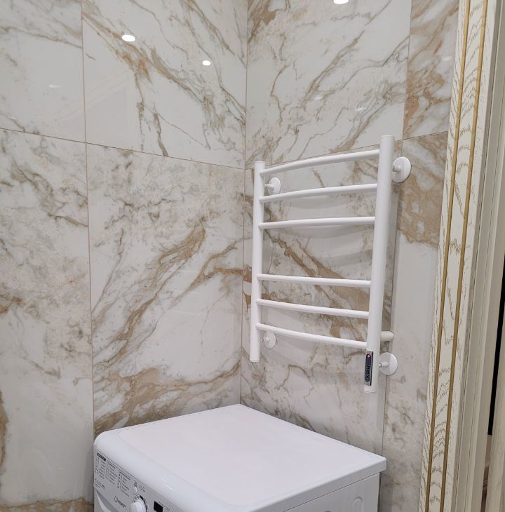 В квартире есть все необходимое для комфортного проживания: современная мебель на кухне и в комнате, а также полный набор техники — кондиционер, холодильник, посудомоечная и стиральная машины, телевизор. Санузел совмещенный, оборудован ванной.
