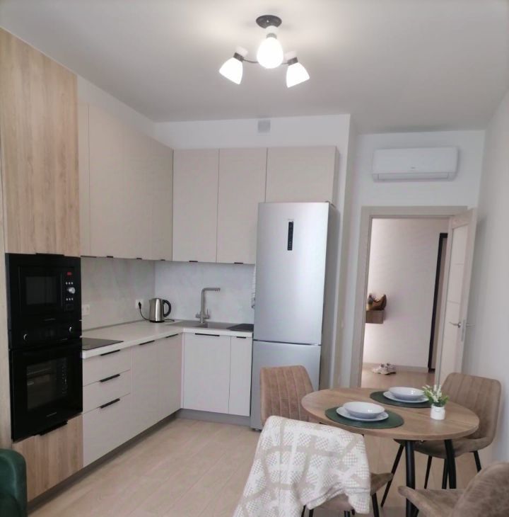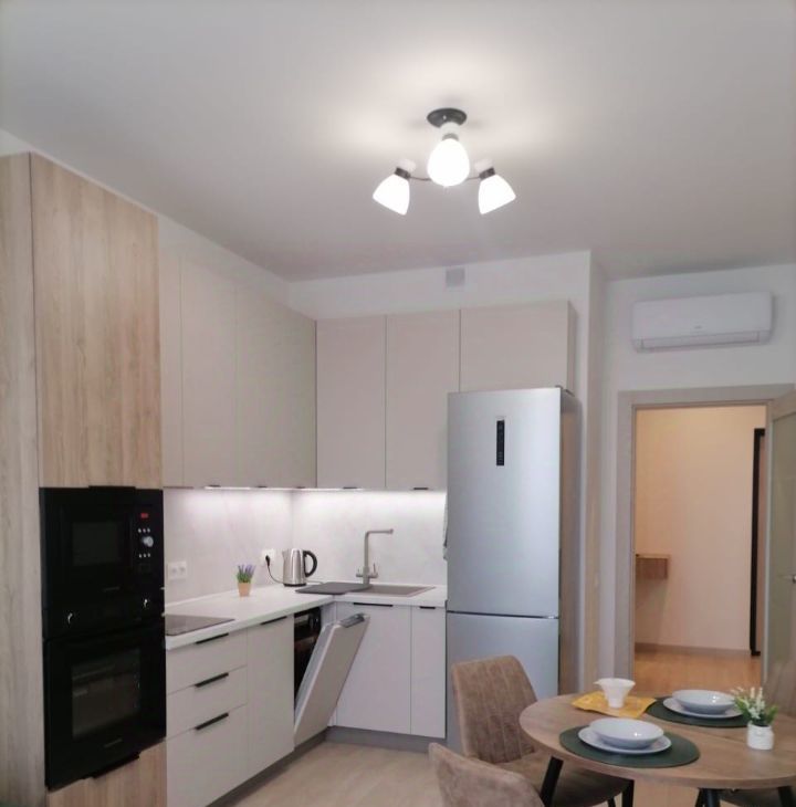 ЖК 'LIFE Варшавская'. Стильная квартира со свежим дизайнерским ремонтом. Просторная кухня-гостиная - 18 м и изолированная спальня - 17 м. Кухонный встроенный гарнитур (полки, шкафчики с доводчиками) со всей бытовой техникой премиум класса, включая посудомоечную машину, кухонные принадлежности. Установлен фильтр для очистки воды Кухня поделена на две зоны: обеденная и зона отдыха. Комната полностью укомплектована современной мебелью: кровать с ортопедическим матрасом, шкафы для хранения одежды (постельное белье). Большие окна создают много света. Для комфортного проживания: телевизор ЖК, два кондиционера, пылесос. В ванной комнате стиральная машина, унитаз с сиденьем микролифт. Презентабельная входная группа. Рядом с домом бесплатные парковочные места. Облагороженная придомовая территория. Район с развитой инфраструктурой: сетевые магазины, аптеки, кофейни, фитнесс центр, салоны красоты. Предложение для одного человека или пары.