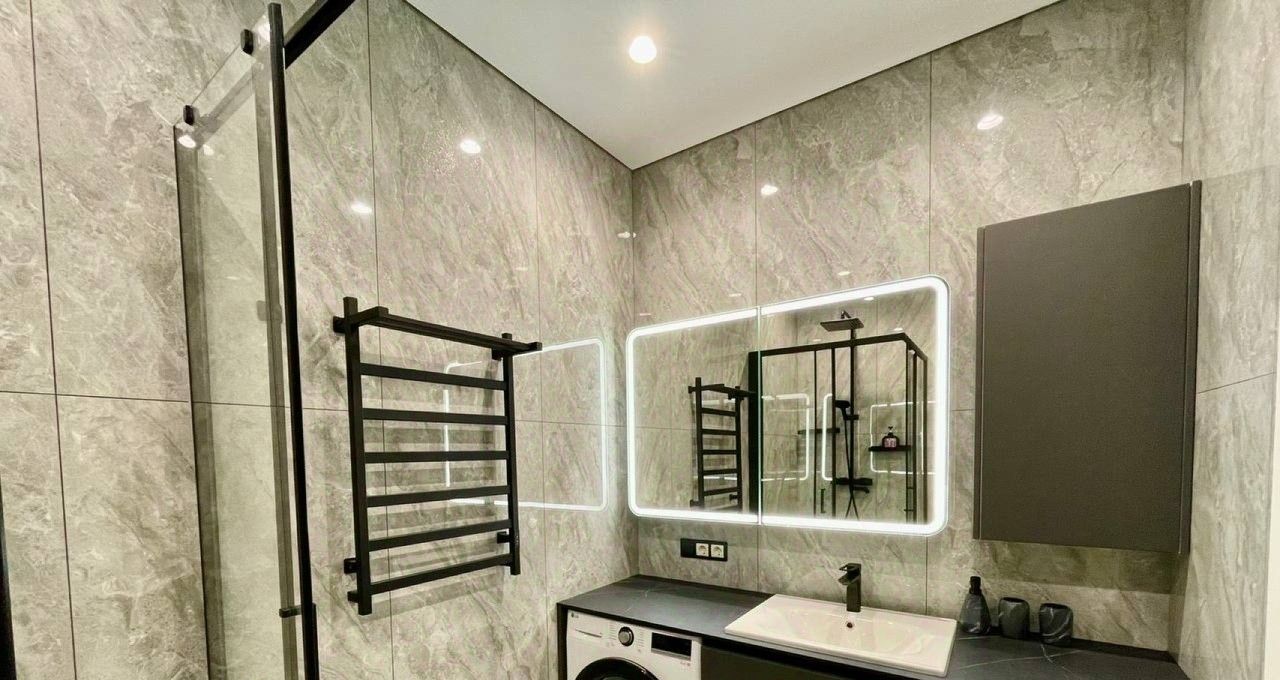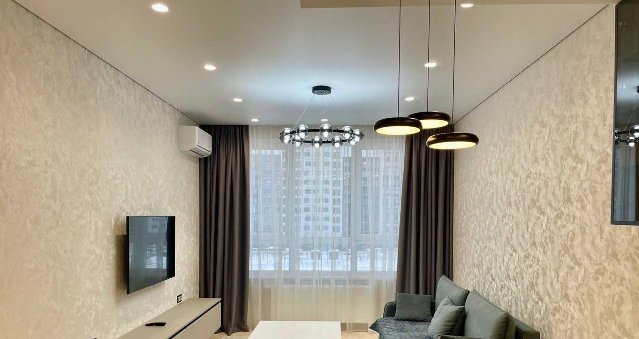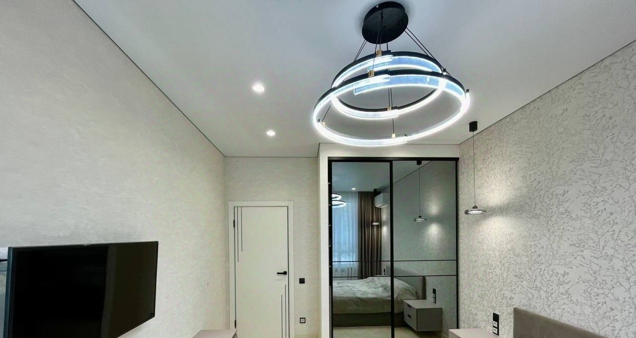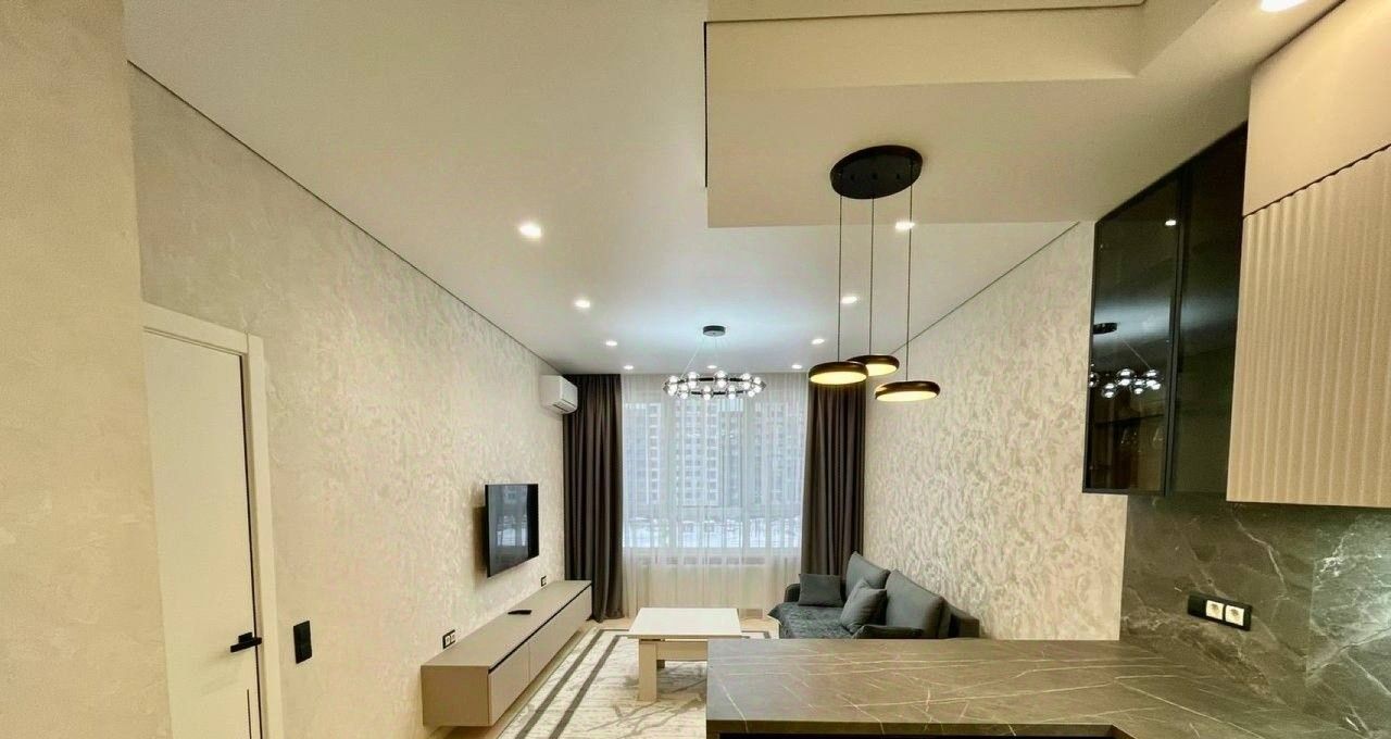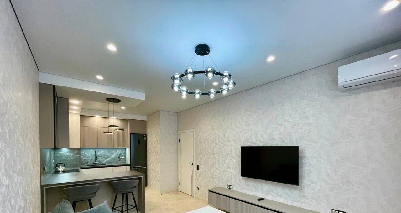 Квартира площадью 47 м² имеет четкое и комфортное зонирование: просторная кухня, объединенная с гостиной, уютная спальня и большой совмещенный санузел. Дизайнерский ремонт выполнен с использованием качественных материалов. Полная комплектация мебелью и техникой позволяет заселиться сразу после подписания договора. В вашем распоряжении будет вся необходимая бытовая техника: от встроенной посудомоечной машины и стиральной машины до кондиционера и телевизора. Высокоскоростной интернет уже подключен. Большое количество различных вариантов освещения, позволяет создать уютную атмосферу. Шкафы в прихожей и спальне обеспечивают достаточное количество мест хранения.Объект расположен на шестом этаже десятиэтажного монолитно-кирпичного дома, что гарантирует тишину и обилие света.