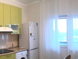 Кухня оснащена встроенной бытовой техникой: холодильник, варочная плита, вытяжка, духовка. Полноценный обеденный стол со стульями.