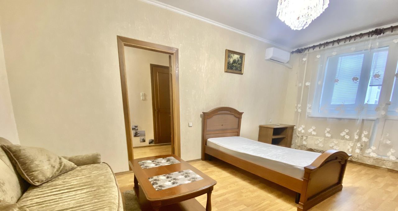 В квартире есть вся необходимая мебель. Кухонный гарнитур со встроенной техникой. Для вашего удобства в наличии бытовая техника, стиральная машина, холодильник, кондиционер. Санузел совмещенный евростандарт. Большая застекленная лоджия.