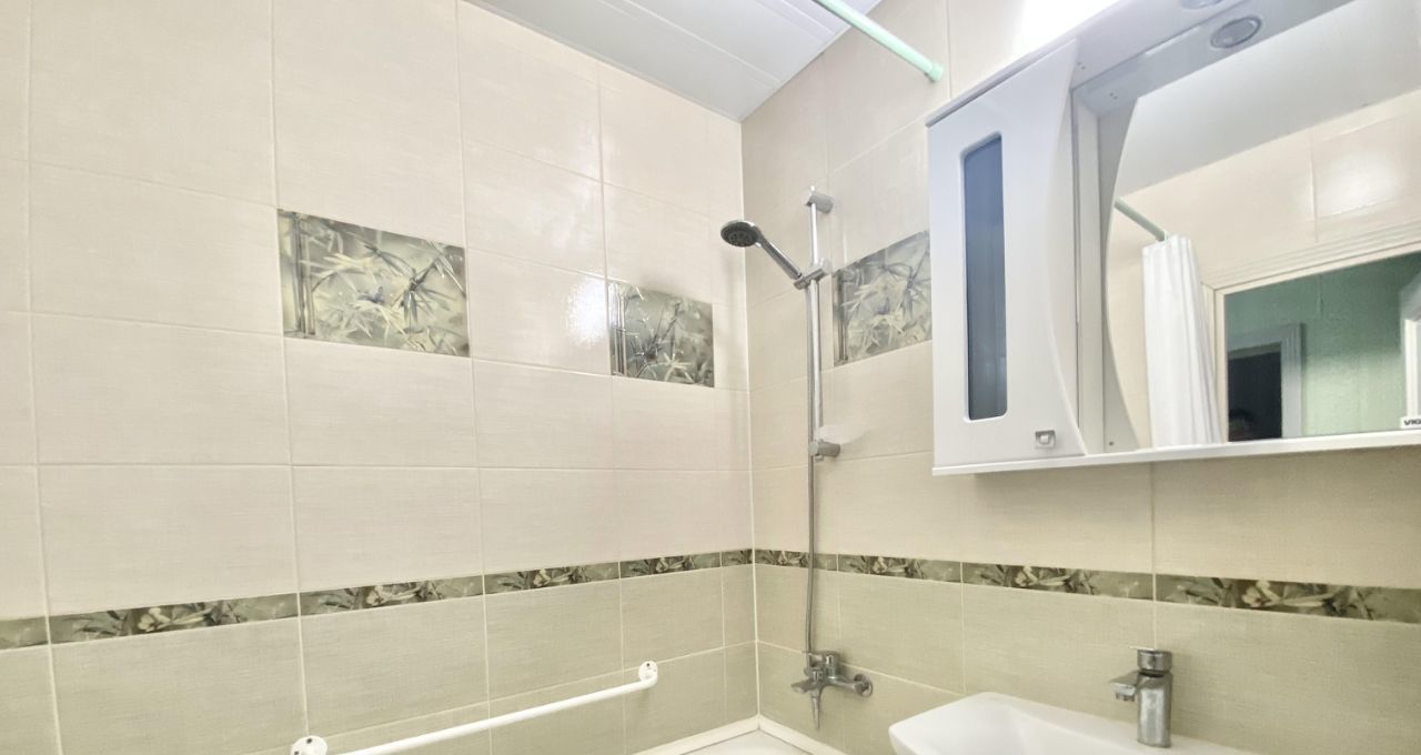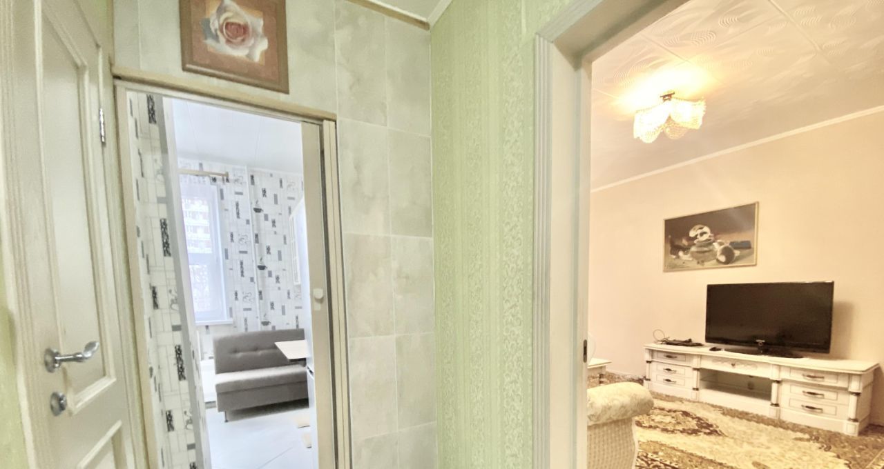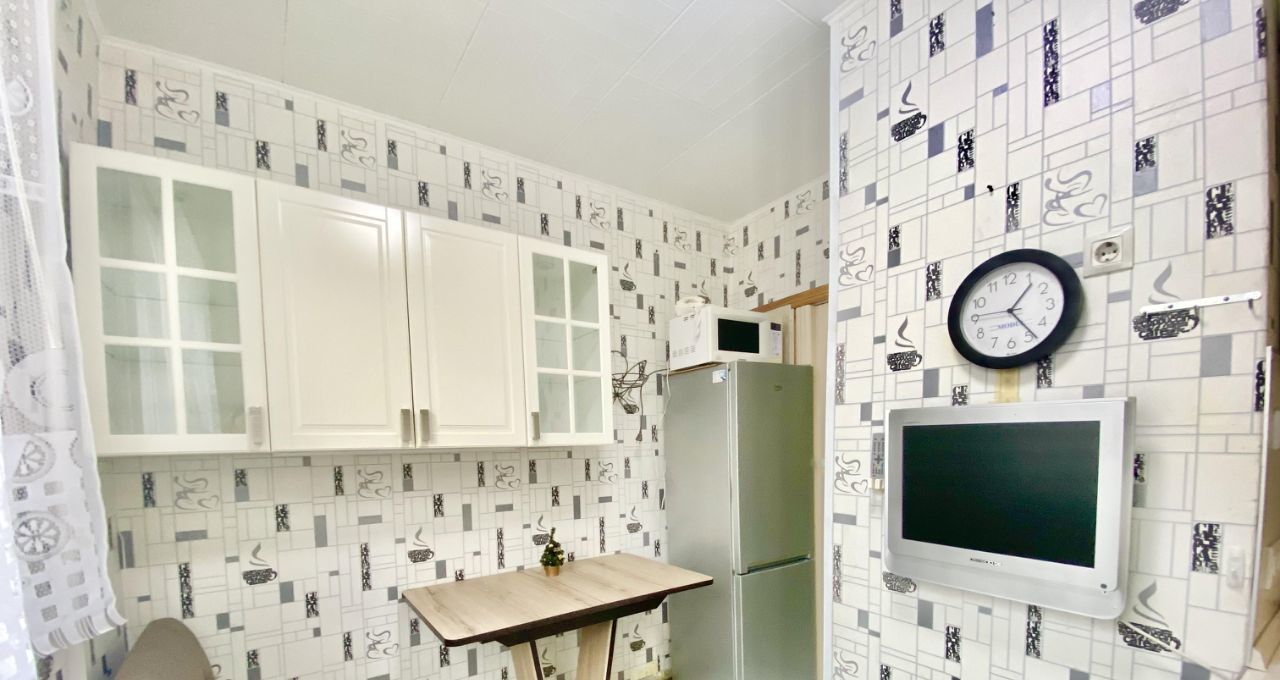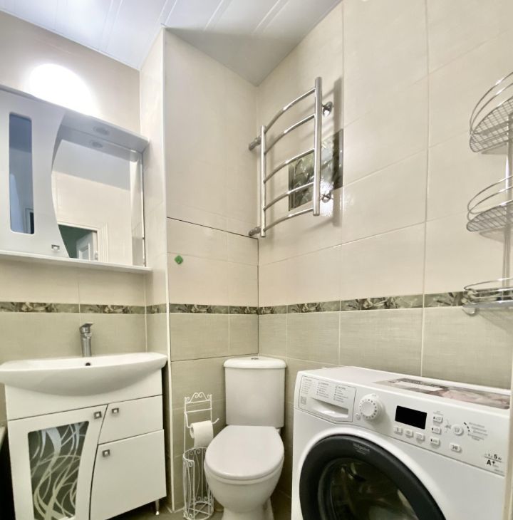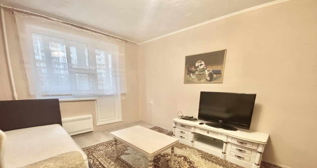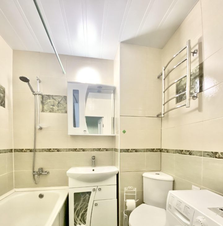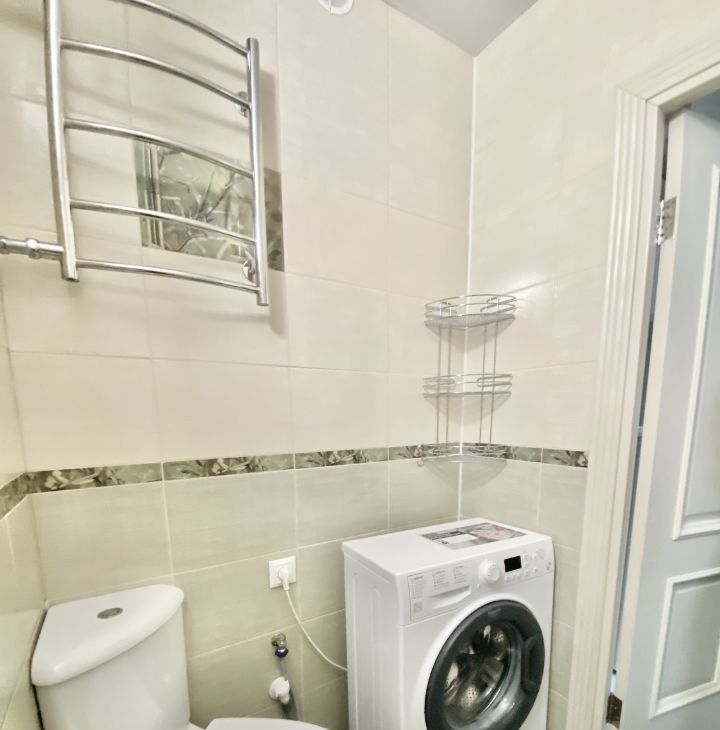 В квартире есть вся необходимая мебель. Кухонный гарнитур со встроенной техникой. Диван в комнате раскладывается (по желанию кровать можем вывезти). Для вашего удобства в наличии бытовая техника, посудомоечная и стиральная машины, холодильник, два телевизора, свч. Санузел совмещенный евростандарт. Большая застекленная лоджия.