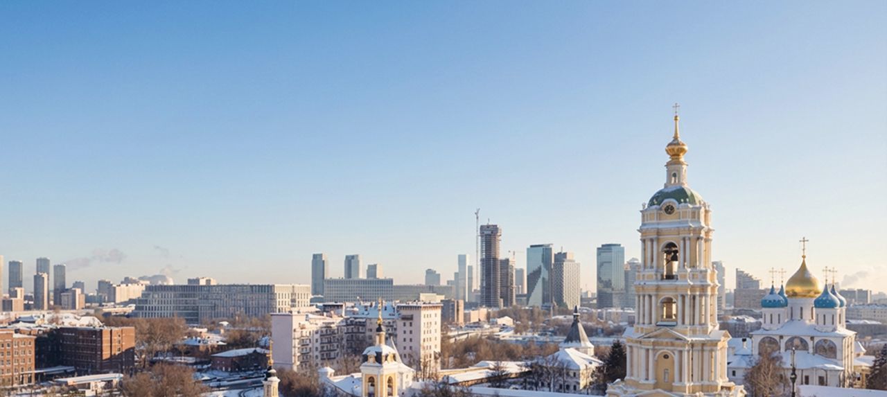 Панорамный вид с 12-го этажа — каждое утро над куполами Новоспасского монастыря. Тишина исторического района + светлые просторы (квартира 46 м² — на 10 м² больше стандартной однушки).
