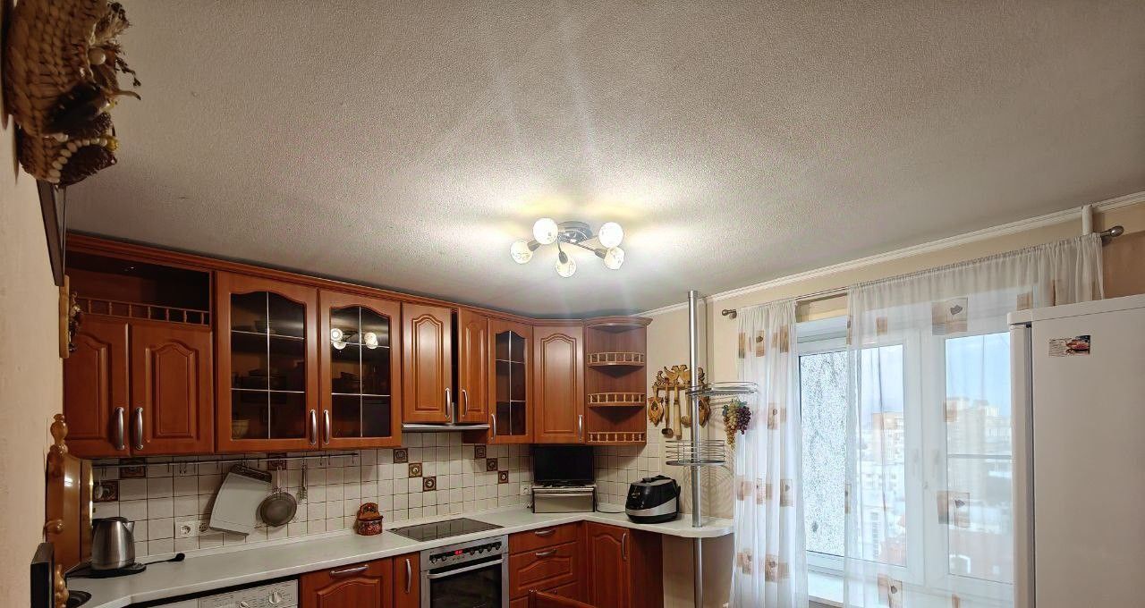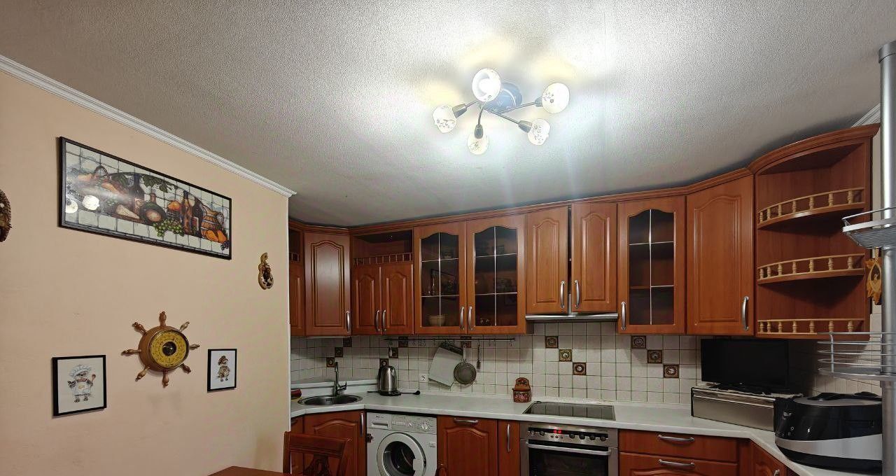 В квартире очень просторная кухня, 11м2, с большим, массивным столом, за которым спокойно разместитесь и Вы, и Ваши гости. Хороший ремонт, кондиционер, посудомоечная машина Bosch, настоящая, крепкая мебель, чистота, имеется бытовая техника: электроплита, стиральная машина, духовка европейских марок, Bosch, Aeg, чистые ванна и туалет.