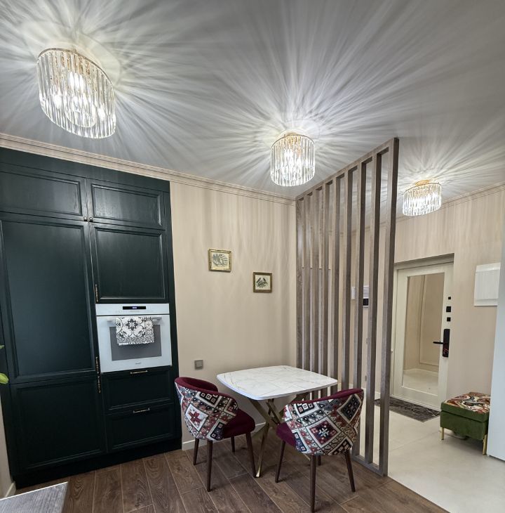 Удобная зона кухни с обеденным пространством, уютная гостиная с ТВ и продуманными системами хранения. Всё сделано для максимального комфорта и удобства.