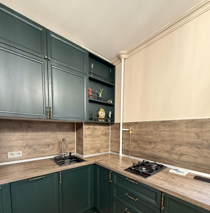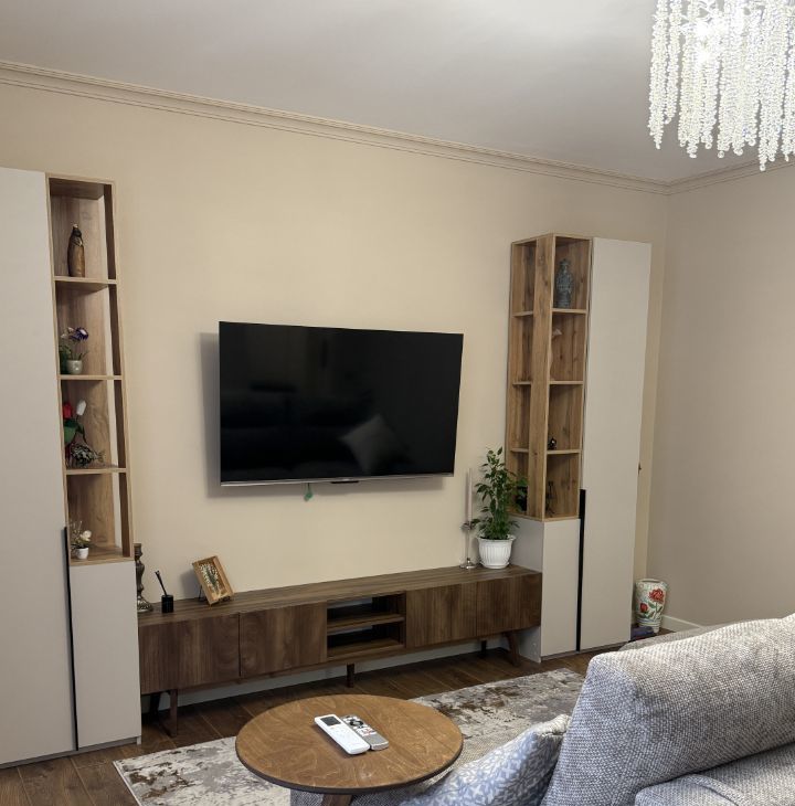 Удобная зона кухни с обеденным пространством, уютная гостиная с ТВ и продуманными системами хранения. Всё сделано для максимального комфорта и удобства.