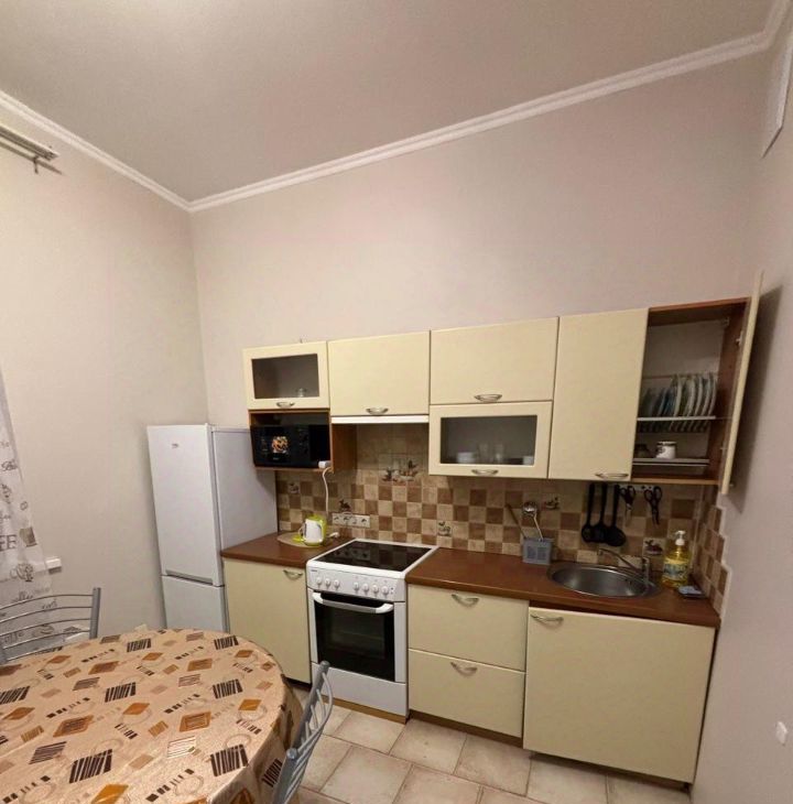 Сдается уютная 1 комнатная квартира в пешей доступности от метро Братиславская. Вся мебель и техника для вашего комфортного проживания в наличии. Весь кухонный гарнитур, стиральная машина автомат, холодильник, плита, микроволновая печь, обеденный стол со стульями. В комнате: диван, тумба под тв, телевизор. Раздельный санузел, окна пвх, металлическая входная дверь. Подключен интернет, есть наземная парковка у дома. Развитая инфраструктура района, все в шаговой доступности, метро, школы, сады, магазины, торговый центр.