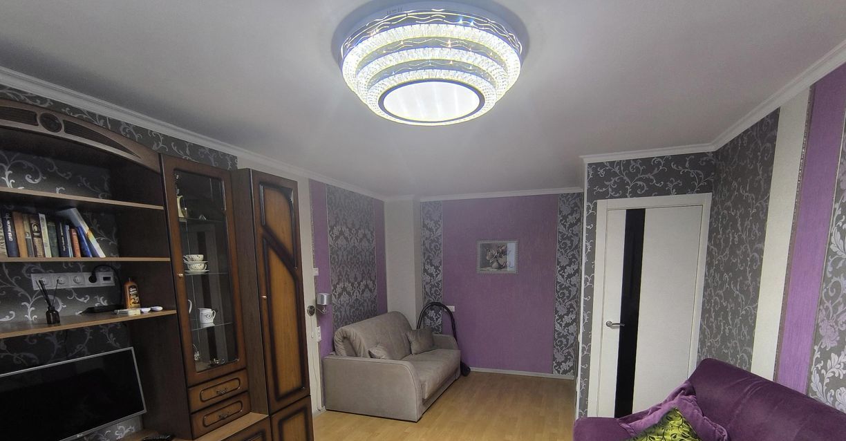 В квартире сделан евроремонт, что создает современную и комфортную атмосферу. Жилая площадь составляет 19,8 кв. м, а кухня — 10 кв. м, что обеспечивает достаточное пространство для приготовления и приема пищи. В квартире есть вся необходимая техника: кондиционер, холодильник, стиральная машина, телевизор. Обстановка включает мебель на кухне и в комнате. Санузел совмещенный, оборудован ванной. Окна выходят на улицу, а также имеется лоджия, где можно отдохнуть на свежем воздухе.