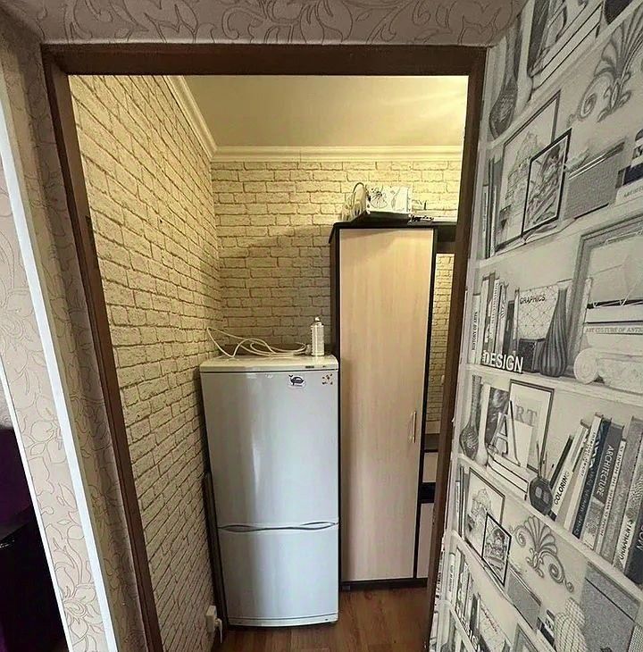 Шкаф в комнате и диван староваты, но пригодны для использования.