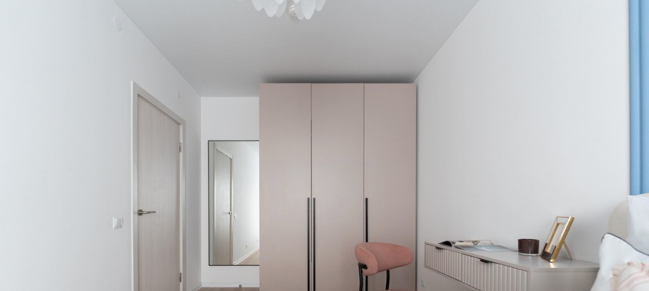 В спальне кровать 160*200 с качественным матрасом и подъемным механизмом, а также вместительный шкаф и туалетный столик.