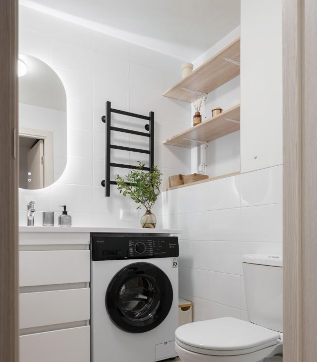Установлена стиральная машина.