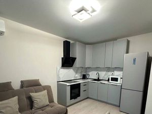 Квартира оборудована кухонным гарнитуром, мебелью и бытовой техникой. Есть: