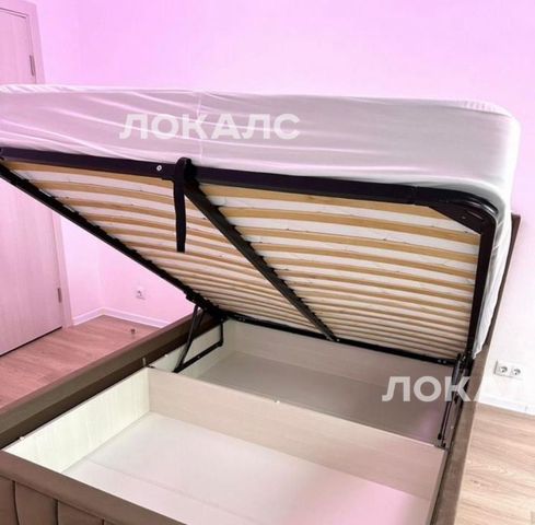 Новая кухня со всей современной бытовой новой техникой . Кухонный стол со стульями, стиральная машина, полотенцесушитель , зеркало с подсветкой в ванной, шикарная двухспальная кровать с подьемным механизмом и дополнительным местом для хранения вещей, матрас ортопедический. Также в прихожей установлен большой шкаф с зеркалом.