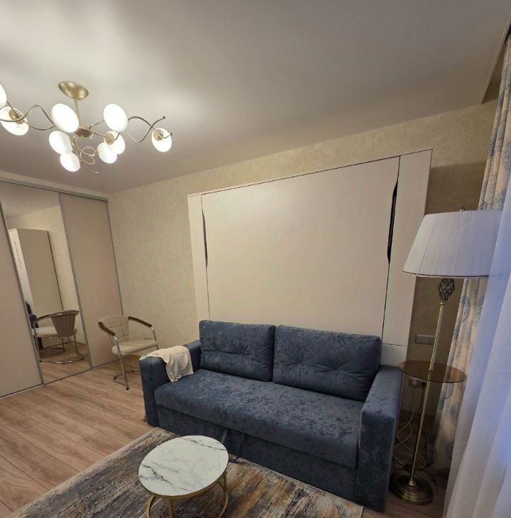Квартира после современного ремонта, вся новая мебель и техника. В комнате шкаф-кровать трансформер с диваном, раскладывается быстро и удобно. Устроена гардеробная, совмещенный санузел с душем, изолированная кухня, застекленная лоджия. Есть кондиционер, микроволновка, газовая варочная поверхность, встроенный холодильник, духовка, стиральная машина, два телевизора, пылесос, домофон, интернет. В окно видно здание ВЭБ Арены. Недалеко автобусные остановки, Всехсвятская церковь, магазины и кафе. Срок аренды от 4-х месяцев. Можно с деньми и животными.