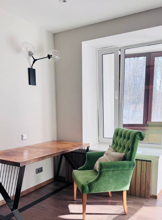 - зона для работы: большой красивый стол, большое красивое кресло, широкий подоконник,