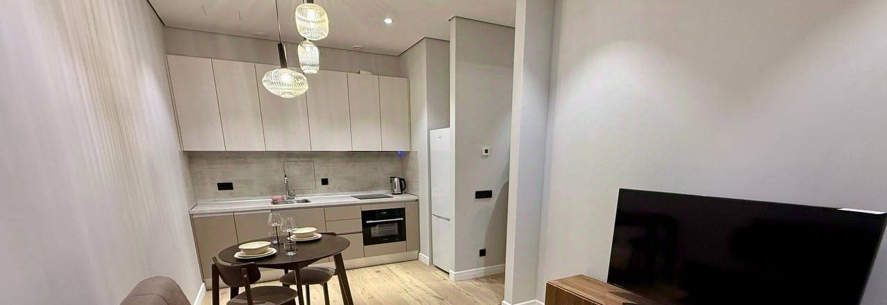 В квартире располагается кухня 10м2 и мини-гостиная, изолированная спальня, а так же санузел с ванной.